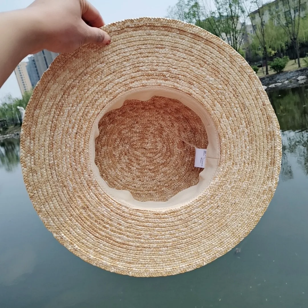 Boater Straw Hat wide brim French elegant square ribbon women's sun hat holiday straw hat 모자 햇빛 가리개